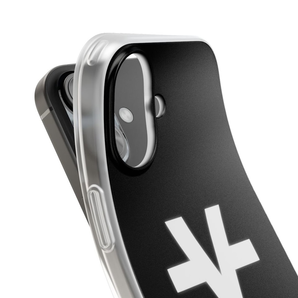 Yeezus logo phone case for Kanye West merch, black and white design, compatible with iPhone, featuring Yeezus branding and iconic Y-shaped logo.